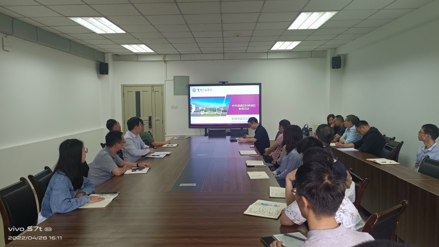 会上,重庆德立创新专利代理事务所王典彪总经理开展了“提升专利质量,培育高价值专利”专题培训。学院产学研办公室晏慧博士组织学习了科学道德、科研诚信相关文件及学术不端典型案例,并就重庆市科委教委科研项目申报流程、横向纵向课题管理办法等进行了培训。新进教师汇报了入职以来的科研工作,在研究方向、成果和未来规划等方面进行了交流探讨。