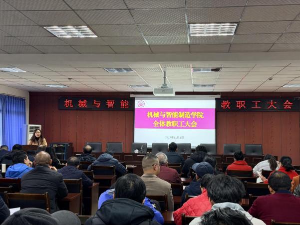 12月3日下午,机械与智能制造学院在砺志楼L301会议室召开全体教职工大会,学院全体教师参会,会议由学院党总支书记邹莉主持。