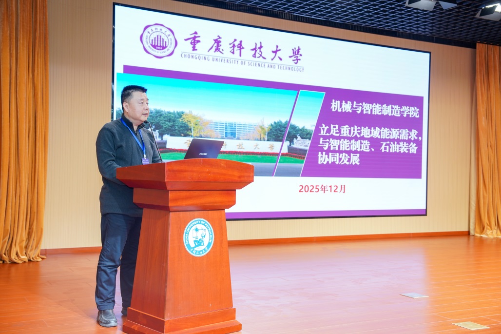 我校机械与智能制造学院副院长邓晓刚在大会上作题为《立足重庆地域能源需求,与智能制造、石油装备协同发展》的大会报告,分享了学院在服务区域发展战略和推动学科交叉融合方面的思考与实践。报告深入分析了重庆作为西部制造业重镇和重要能源通道所面临的独特地域能源与装备需求,详细介绍了机械与智能制造学院在相关领域的学科布局、人才培养模式改革以及产学研合作路径,为油气行业机械工程学科如何与地方经济产业联动发展提供了“重科方案”,引发了与会兄弟院校代表的广泛关注和积极讨论。