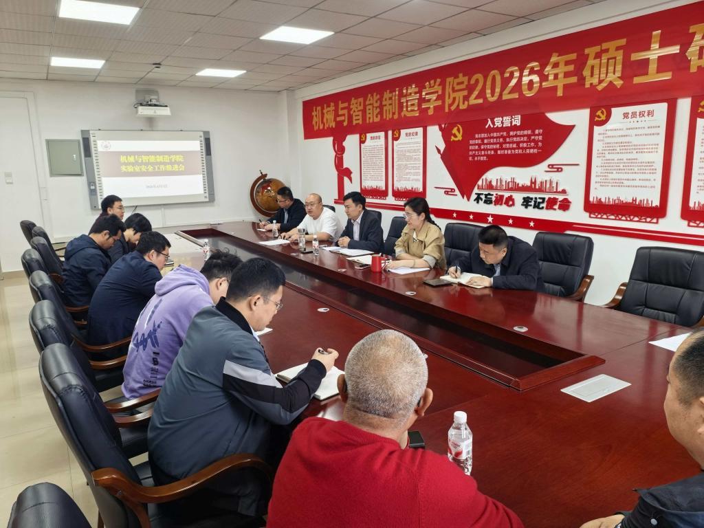 2026年4月3日上午,机械与智能制造学院在L303召开实验室安全工作推进会。学院党总支书记邹莉、院长吕中亮、副院长邓晓刚、院长助理冯伟、各系副主任及全体实验室负责人参加会议。