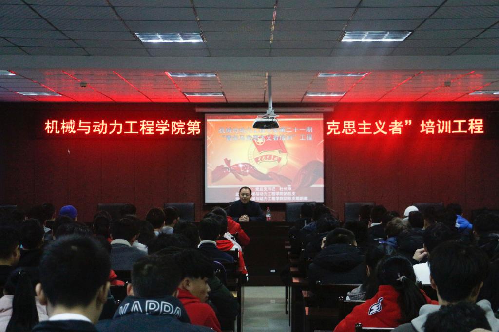 【供稿/机械与动力工程学院 杨倩 周世福】为了提高大学生骨干、团学干部等青年群体的思想政治素质、政策理论水平、创新能力、实践能力和组织协调能力,11月27日下午,机械与动力工程学院在L301召开了第二十一期青年马克思主义培训第三讲,共计有100余人参加。本次培训的主讲人为机械与动力工程学院党总支书记杜长坤教授。