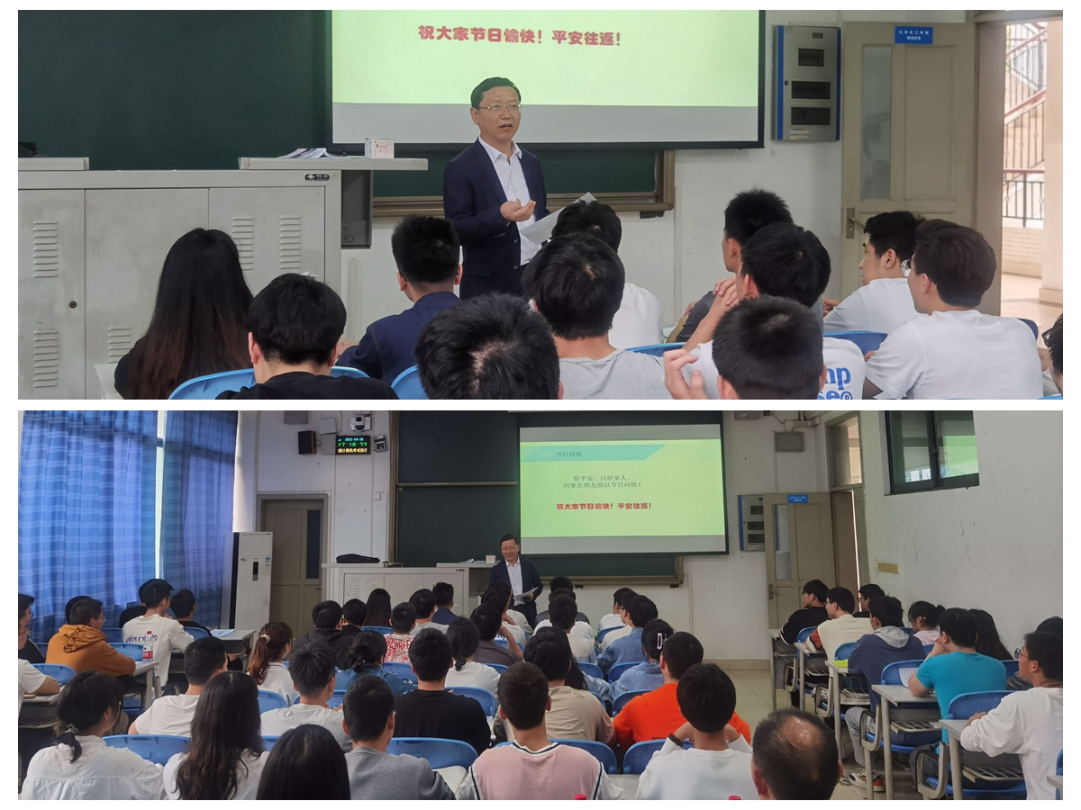 4月28日下午,校长赵明阶参加了学院2019级机械设计与自动化(3+4) 专业学生安全稳定教育班会。主题班会由班级辅导员王凌宇主讲。