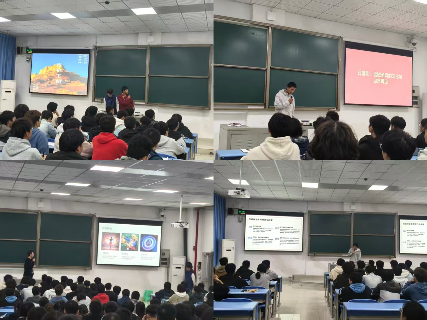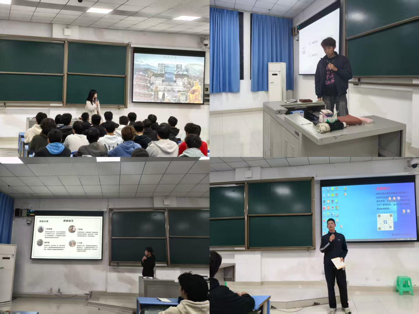 班会伊始,车辆25级陈语诺、机设25级巴桑次仁、贡嘎丹珍和次仁顿珠等同学通过分享陕西与西藏等地的历史文化与风土人情,带领同学们进行了一场生动的“云游”之旅,拓宽了同学们的文化视野。