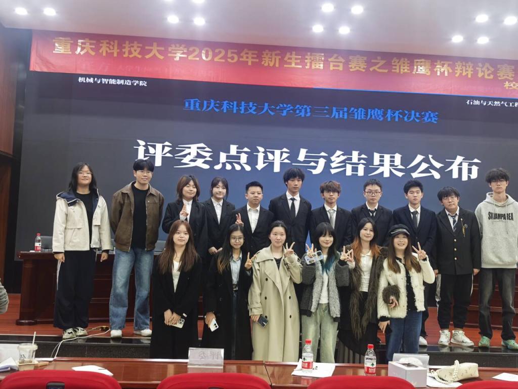 近日,重庆科技大学第三届“雏鹰杯”辩论赛圆满落幕。机械与智能制造学院新生辩论队凭借默契协作与顽强拼搏,最终以9:6的比分击败对手获得冠军。