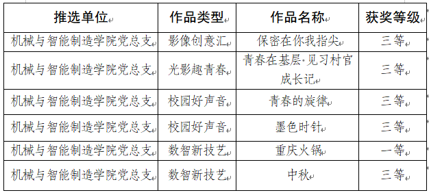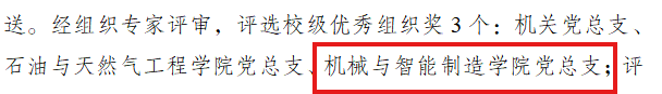 近日,重庆科技大学第八届全国大学生网络文化节和全国网络教育优秀作品推选展示活动作品征集活动落幕,机械与智能制造学院党总支凭借优异组织成效和活动成果,荣获“优秀组织奖”,充分彰显了学院在网络文化建设及青年学生思想引领工作中的卓越成效。