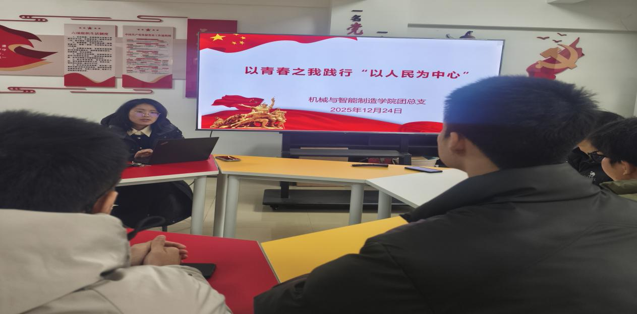 为加强青年学子思想政治教育,引导其深刻领悟以人民为中心的发展思想,机械与智能制造学院团总支于12月24日开展了“以青春之我践以人民为中心”主题教育活动,学院团总支学生分会指导老师胡华主持活动,主要团学骨干参加。