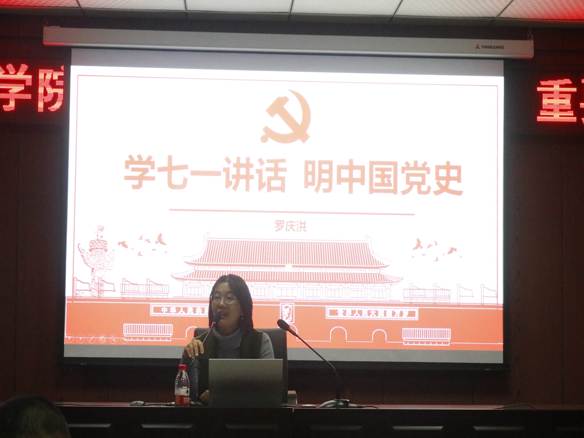 罗庆洪围绕七一讲话精神,从一个“庄严宣告”、一个“伟大精神”、三个“深刻改变”、四个“伟大成就”、四个“深切缅怀”、九个“必须”等方面对习近平总书记重要讲话进行了阐述,深刻阐述了中国共产党百年来的光辉历程、伟大成就、宝贵经验和实践启示, 引导学生要认真学习党的百年发展历史,将七一讲话的精髓和自己的学习生活联系起来,勉励青年学子在新时代建功立业。
