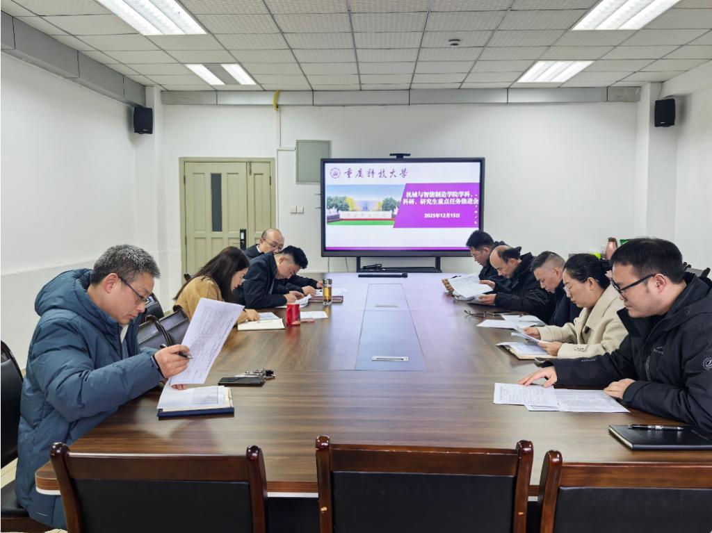 12月15日下午,机械与智能制造学院在砺志楼L203-2会议室召开2025学科科研及研究生重点任务推进会。学院书记邹莉、院长吕中亮、院长助理冯伟等领导班子成员及各研究所所长、相关骨干教师、科研秘书参加会议。会议由院长吕中亮主持。
