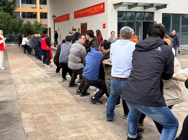 为增强教职工集体归属感与荣誉感,为新进教师搭建融入平台,12月24日(周三)下午,机械与智能制造学院分工会在知行楼小广场举办教职工拔河比赛暨 2025 年趣味运动会。学院领导班子与全院教职工共同参与,现场呐喊助威声与欢声笑语交织,尽显教职工昂扬风貌。